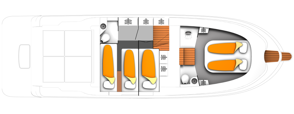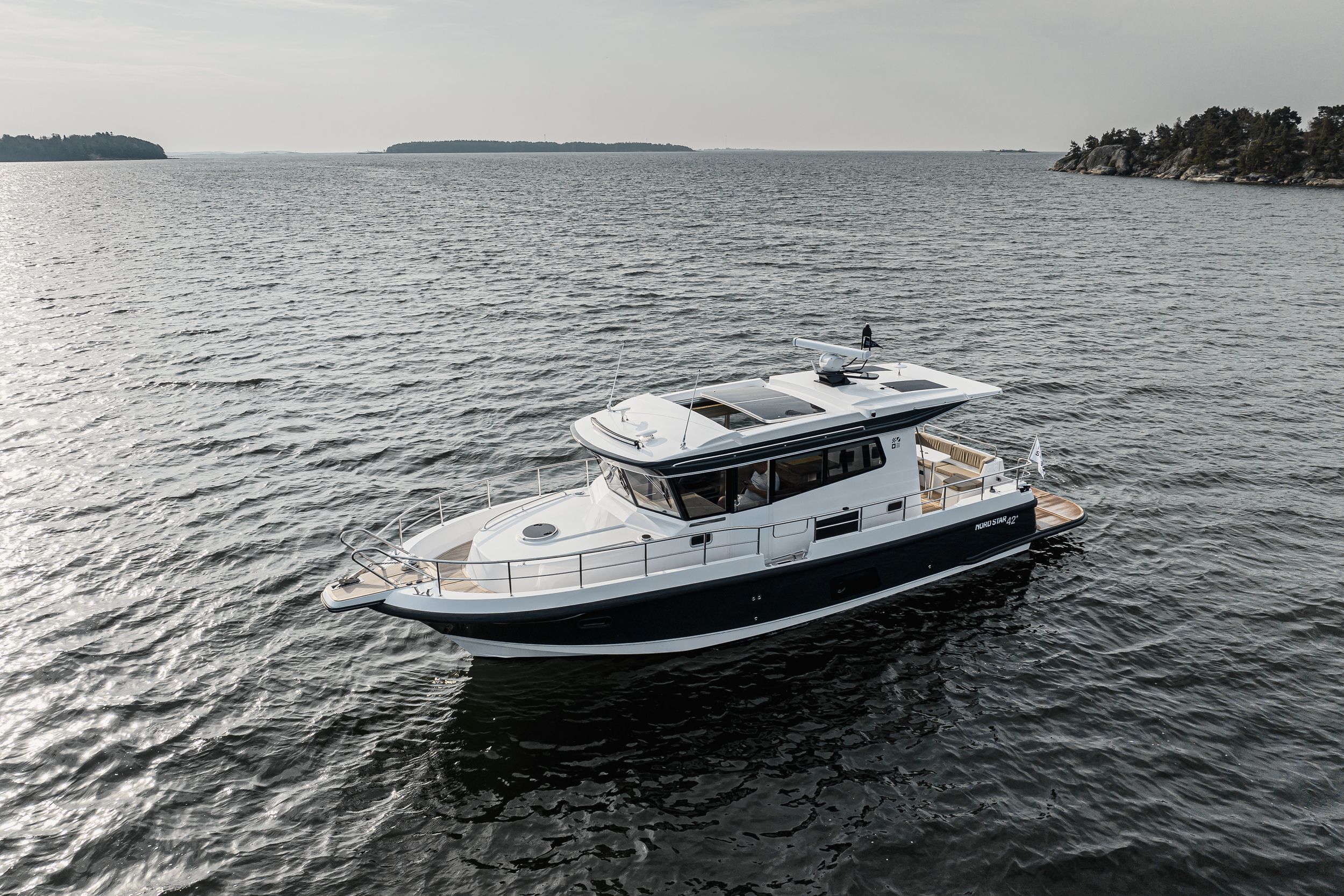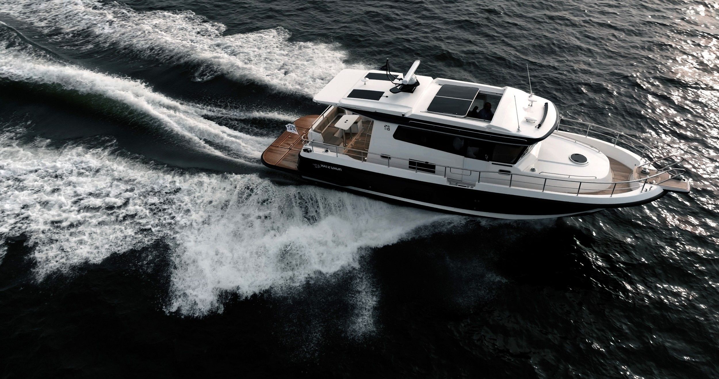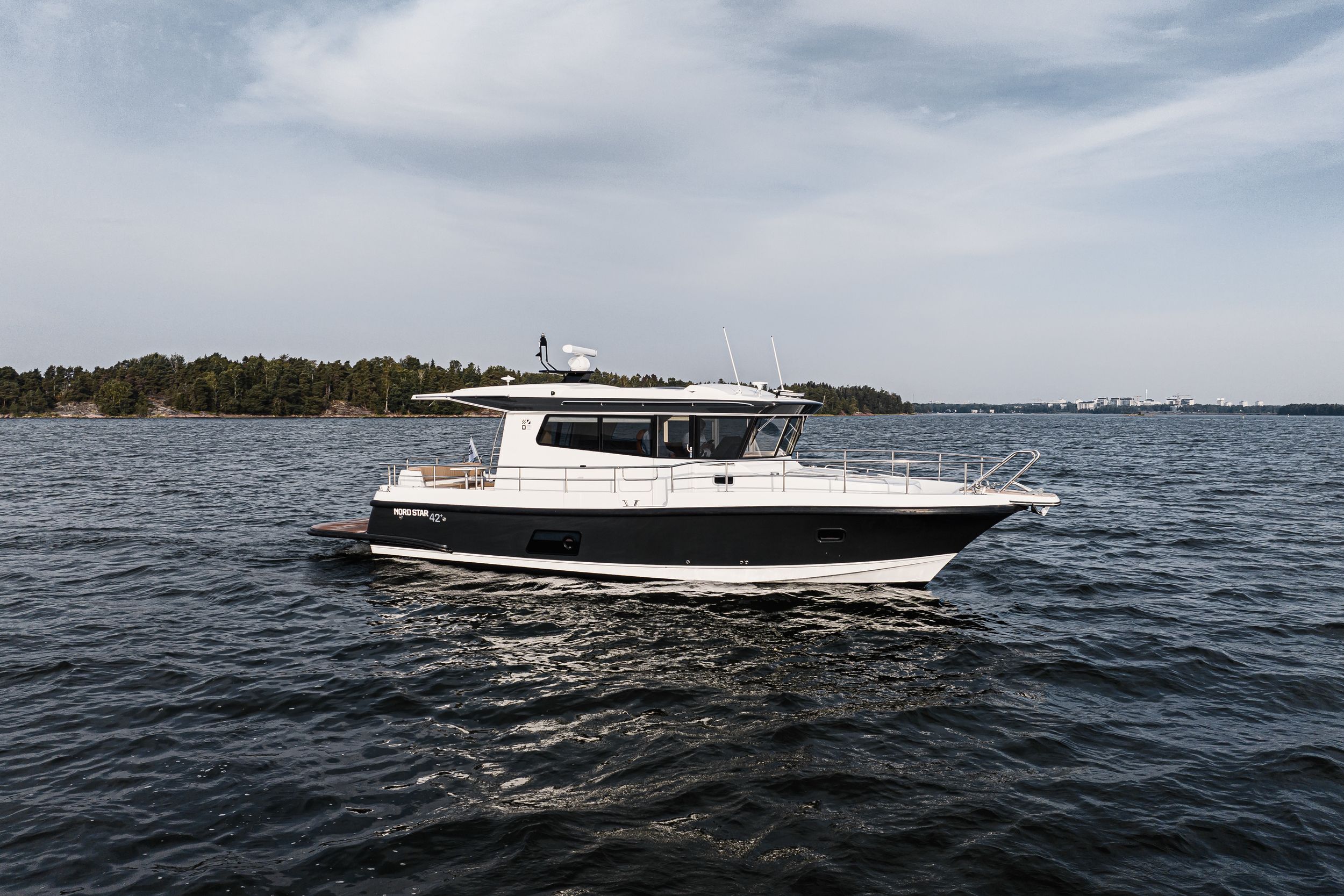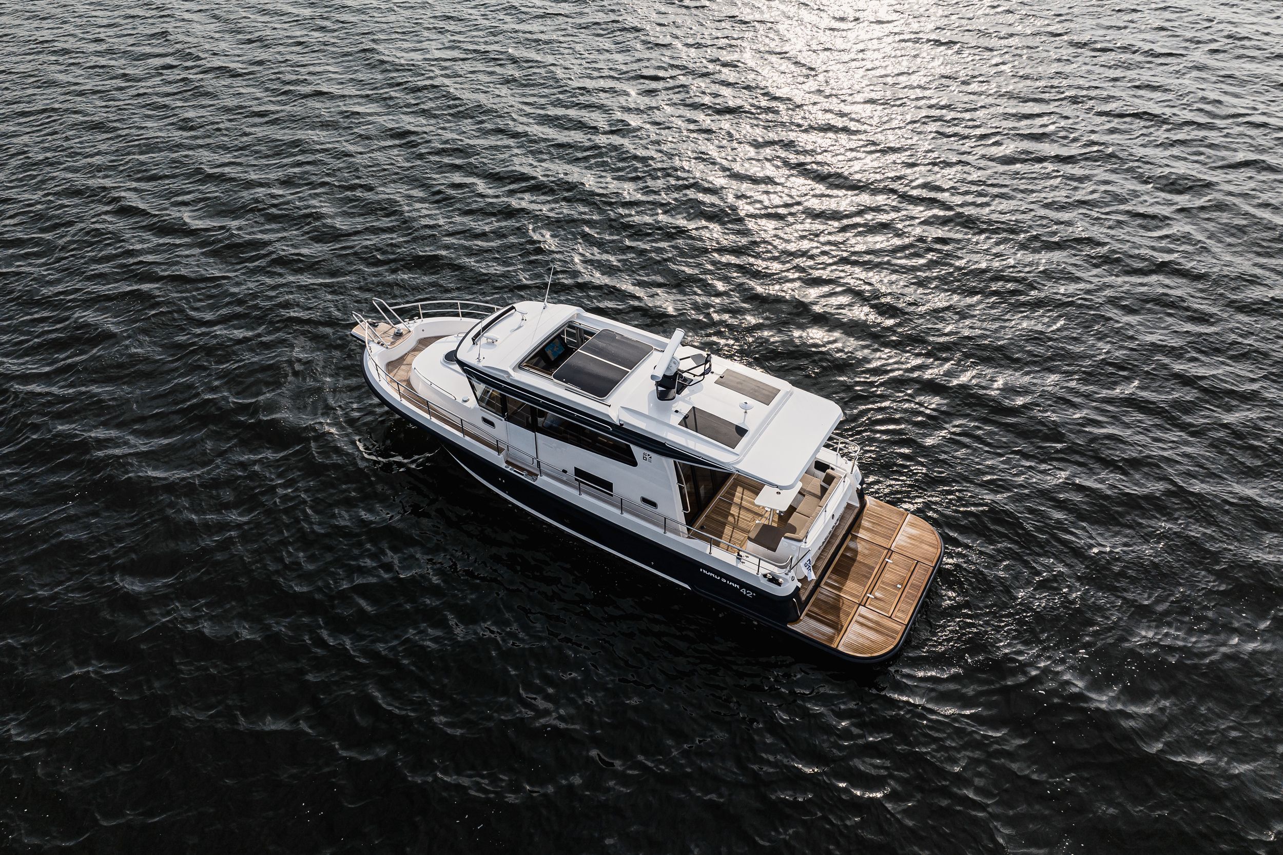 Seaworthiness, comfort and modern elegance are keywords that describe the new Nord Star 42+, a spacious 2-cabin model. It comes with full beam front and AFT cabins, two heads and a separate shower room. Flybridge is optional for enjoying the outdoor views.