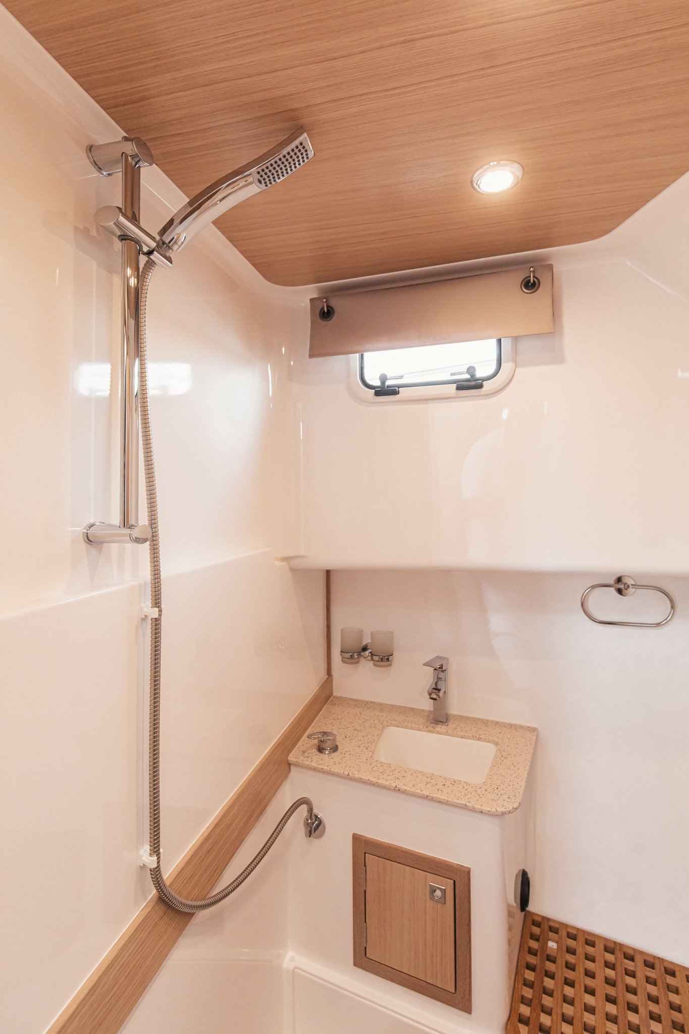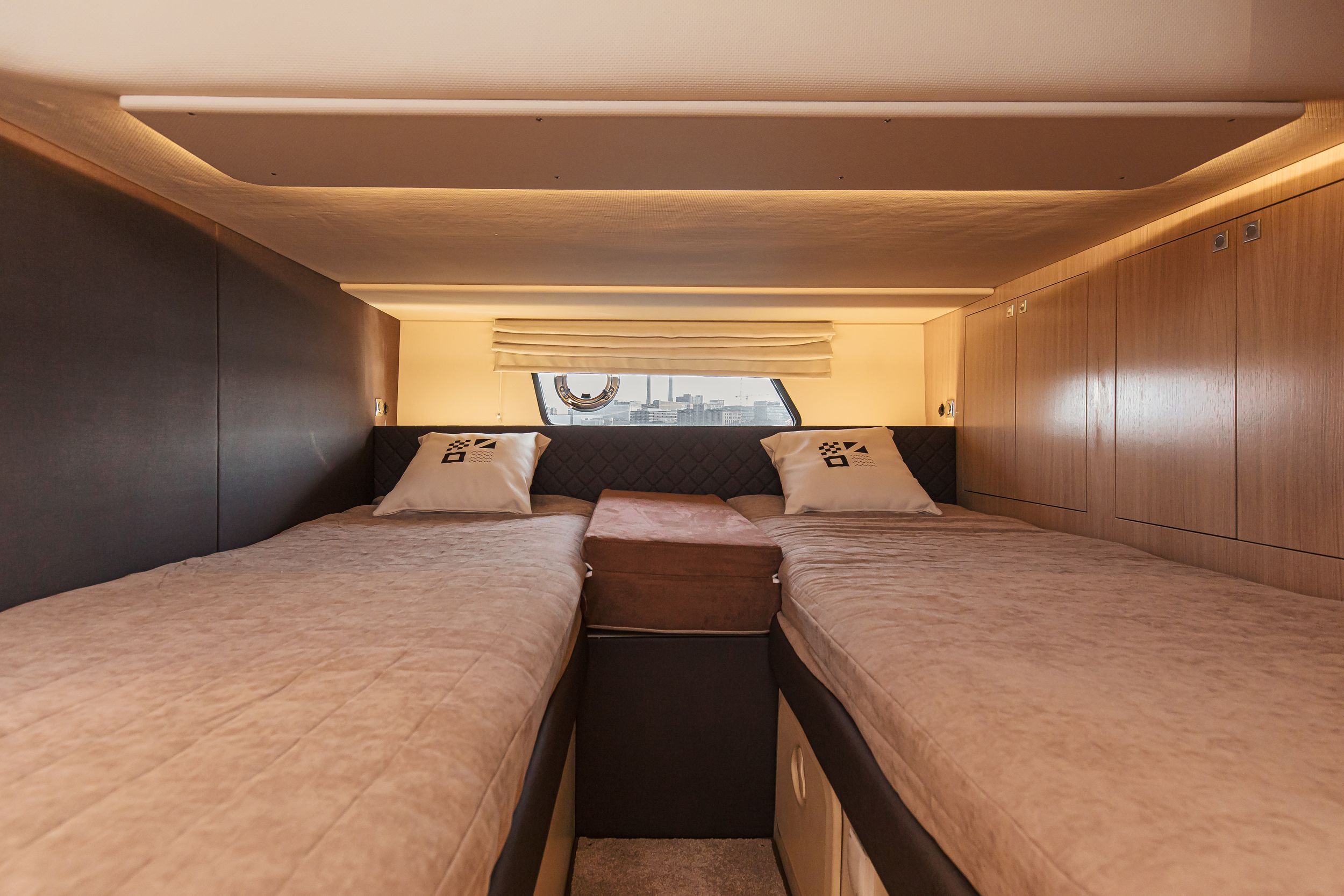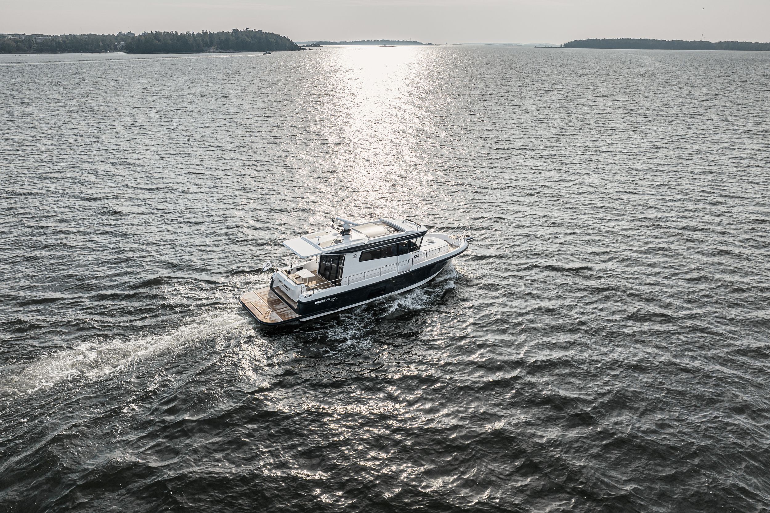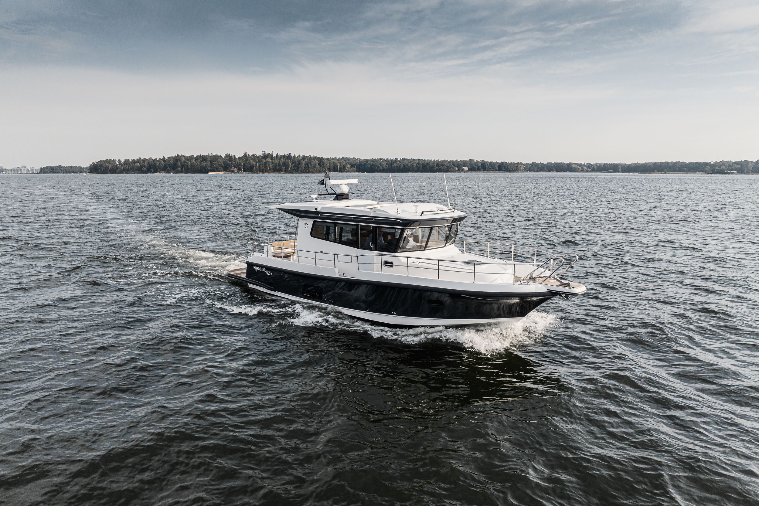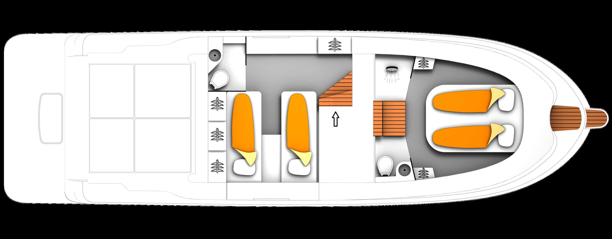 Seaworthiness, comfort and modern elegance are keywords that describe the new Nord Star 42+, a spacious 2-cabin model. It comes with full beam front and AFT cabins, two heads and a separate shower room. Flybridge is optional for enjoying the outdoor views.